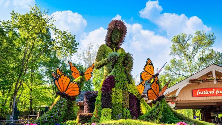 “Dollywood’s Flower & Food Festival delights guests with hundreds of thousands of brilliant flowers making up numerous displays created by tremendously-talented horticulturists. This popular Pigeon Forge event is blooming with fun and discovery around every corner, thanks to larger-than-life sculptures including a butterfly umbrella, various animal scenes and even a depiction of Dolly’s mother quilting the Coat of Many Colors.